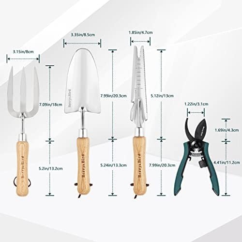 Great Gardening Gift: Our hand trowel, hand fork, 5 in 1 hand weeder tool and pruning shears are designed by professional gardening tool designers. The exterior design is very beautiful and has a great collector’s value. These tools are both practical and beautiful, perfect for all gardening enthusiasts. Berry&Bird’s gardening tool set for men and women makes a memorable treat. It makes a great gift for your loved ones and your favorite gardening enthusiasts.