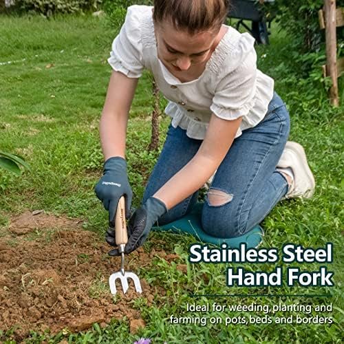 Ergonomic Design Handle: The handles of hand trowel, hand fork and 5 in 1 hand weeder tool are made of ash hardwood harvested from FSC certified forests and feature an ergonomic, streamlined design that fits perfectly in every hand. This special design of the handle can effectively reduce the fatigue of our hands and prevent injuries. The Pruning shears are equipped with an ergonomically designed rubber handle, more suitable for the curvature of the palm, non-slip and comfortable.