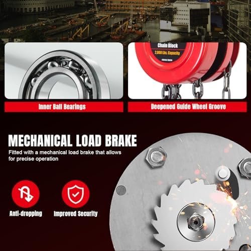 1/4″ diameter chains are constructed from premium 20Mn2 alloy steel with a black oxide finish for added resistance from corrosion and grime; Load-sharing gears makes lifting heavy loads easy