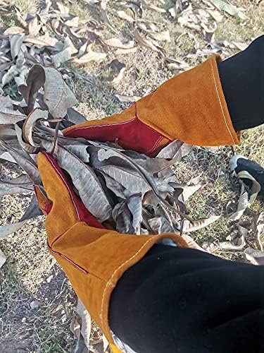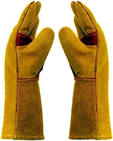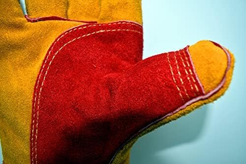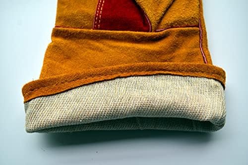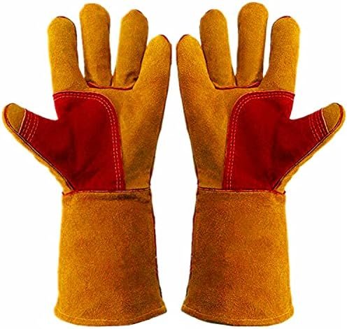These Bite Proof gloves built selected cow split leather and reinforce leather palms, making the garden work gloves more stubborn.The cuffs of bite proof gloves are made of denim jean material;The interior palm of bite proof gloves is made of cotton cloth, soft and delicate, and more comfortable to wear. also these garden work gloves fit keep warm in winter,So these work gloves puncture resistant, cut resistant, bite resistant, heat resistant, oil resistant and fire resistant.