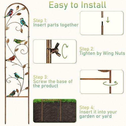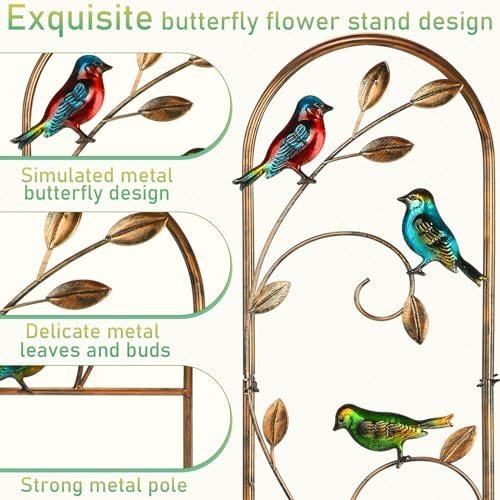 Reliable Quality Construction: our hummingbird metal garden trellis are crafted from quality metal, ensuring durability and stability. The sturdy construction allows them to securely hold various flower arrangements or potted plants, providing a beautiful backdrop for showcasing your botanical beauties