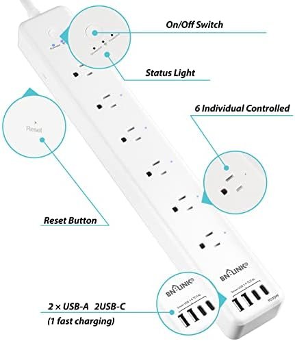 443443443443 BN-LINK Smart Power Strip Compatible with Alexa Google Home, Smart Plug WiFi Outlets Surge Protector with 4 USB 6 Charging Port Multi Plug Extender,15A – 4zera3a