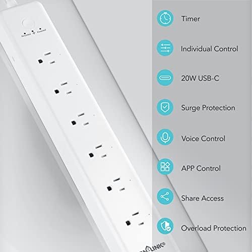 【Efficient Smart Power Strip with Fast Charging】: Elevate your home automation with our Surge Protector Outlet, featuring 6 outlets, a 20W max output USB-C fast charging port, and 4 additional USB ports. Control devices via voice with Alexa and Google Assistant, and remotely manage your electronics over 2.4G WiFi (not 5G). Perfect for safely powering and quickly charging devices like cellphones and Kindles in both home and office settings