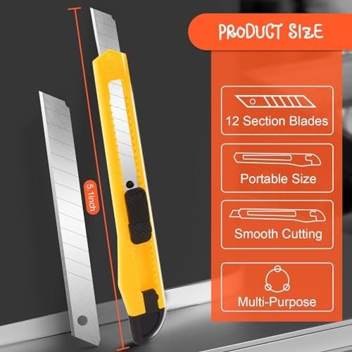 Light-Weight & Portable: Weighing in at 9.8 grams and available in 4 PCS, it’s easy to carry anywhere, whether it’s crafting, cutting boxes or daily use. Perfect for those who value efficiency and convenience, as the blade can be easily broken into 12 sections, ensuring a sharp cutting edge at all times, making it a cost-effective option compared to other utility knives.