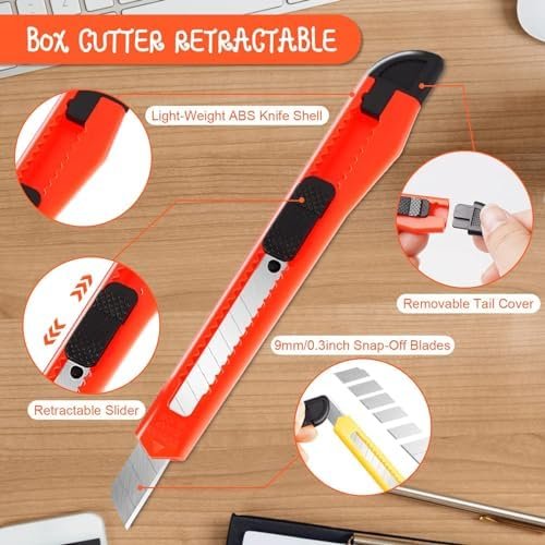 Comfortable to Grip: The box knife handle is made of ABS material, which is strong and durable. And the retractable knife is thinner and has a prismatic design, which is easy to hold and not easy to slip from the hand.