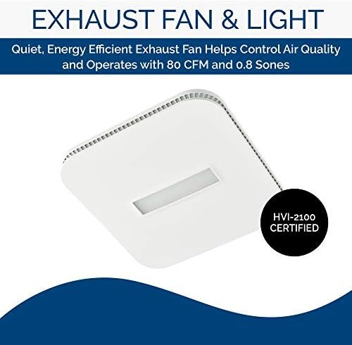 HIGH-QUALITY FAN: Quiet, ENERGY STAR certified exhaust fan operates with 80 CFM and 0.7 Sones to help control air quality is powerful enough for rooms (including bathroom) up to 75 sq. ft.