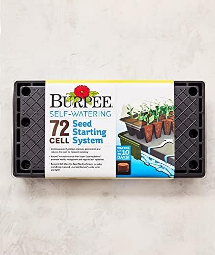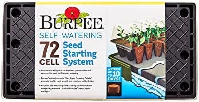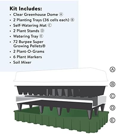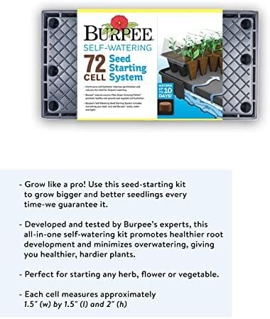 Grow like a pro with Burpee’s 72 Cell Self-Watering Growing System, a complete indoor seed starting set that includes two 36 cell planting trays, two plant stands, one self-watering mat, one water reservoir tray, 72 super growing pellets, and a dome cover. All-in-one self watering kit promotes healthier root development by minimizing overwatering, giving you bigger, better seedlings and hardier plants. Stay organized using the included two plant-o-gram diagrams to note which herb, flower or vegetable seeds were sown in which cells, plus six 4″ plant markers. Space to grow up to 72 seedlings in cells measuring 1.5″W x 1.5″L x 2″D each. Entire tray is 10″W x 20″L x 5″H. SEED STARTING TIP: Place super growing pellets flat-side down and add very warm water slowly for maximum expansion. 100% GUARANTEED: Burpee is committed to the success of all gardeners. We treat each order with care to ensure healthy seeds, plants, soil mixes & gardening supplies are sent in excellent condition.
