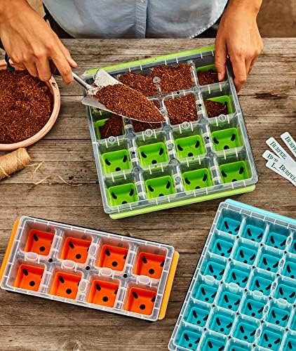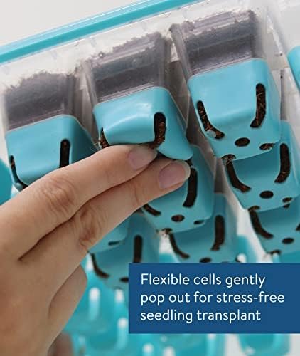 SMARTER WATERING SYSTEM: Molded corner slots in each cell improve drainage and soil aeration to set your seeds up for germination success. Deep channels in the watering tray draw excess away from the cells, while the raised perimeter edge keeps water contained in the tray – no spills! Seed tray side handles make it easy to lift and pour off excess water or check seedlings daily.