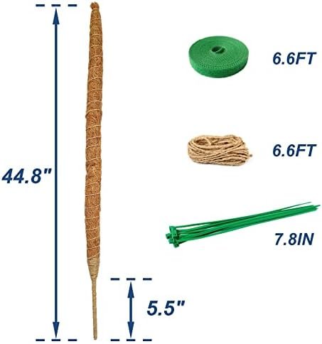 PACKAGE INCLUDED – 2 x 44.8 inch bendable moss poles, 1 x 6.6FT Jute Twine, 1 x 6.6FT Nylon Self-adhesive Garden Tape, 10 x Green Zip Ties.