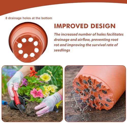 Improved Design: The nursery pots have 8 drainage holes at the bottom. We have enhanced the design by thickening the bottom and increasing the number of drainage holes. The increased number of holes facilitates drainage and airflow, preventing root rot and improving the survival rate of seedlings.