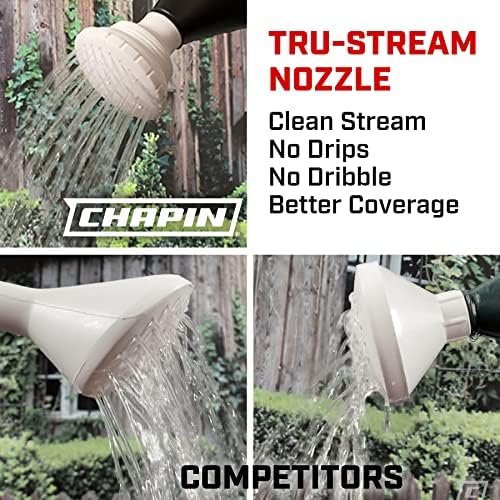 Chapin’s 47998 2-gallon 100% recycled polymer watering can makes watering indoor and outdoor plants efficient. Its Tru-Stream nozzle, unlike others, produces an even shower stream without the unwanted drool. Fitted with a standard ¾ inch gasket, the shower head is leak-free. The large 2-gallon tank allows to you fill less often and easily fits under most in and outdoor faucets. Keep it under your sink, in the shed or your garage so you’ll have it for those quick tasks. Its nozzle is removable and in two pieces so you can easily remove and clean it. Made in the USA from recycled polymer, better for the environment, less in the landfill.