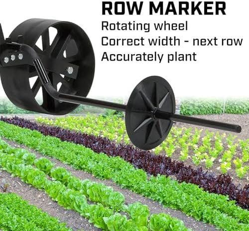 ROW MARKER: adjustable rotating wheel row marker provides correct width for the next row; fully customizable depending on the type of seeds being planted; set it before starting if you’re planting the same seeds and adjust when switching to a new seed