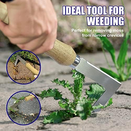 L-SHAPED DESIGN – L-shaped blade design can cuts weed and moss from different directions. You can use it to easily break open the hard soil and dig out weeds deep into the stone cracks. It provides precise access to the narrowest areas and cuts directly through the roots of weeds, making it ideal for removing moss and weeds from paving roads and crevices.