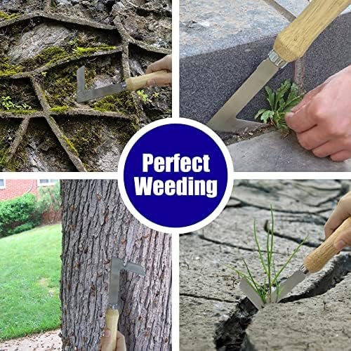 QUALITY MATERIAL – The main body of the crevice weeding tool is made of high hardness stainless steel material, strong and durable, rust and wear resistant, not easy to bend. The wooden handle is light and sturdy, adding extra comfort to your already tired hands. And the crack weeder comes with a lanyard, perfect for hanging your tools in the garden or anywhere.