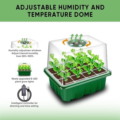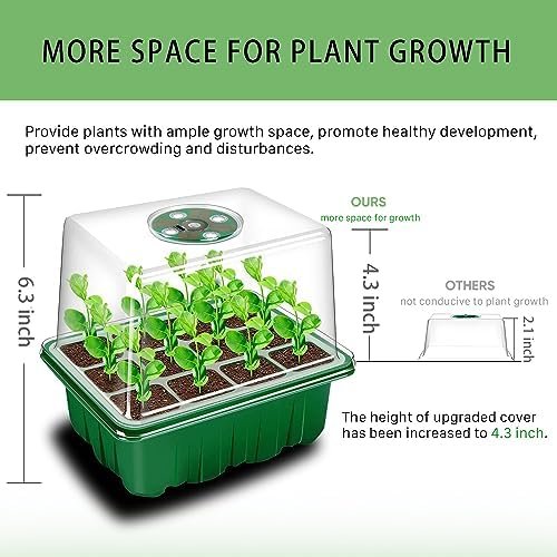 【Adjustable Humidity and Temperature】Our seed box has an adjustable humidity and temperature switch on the top of the lid. This allows you to easily control the environment for your seedlings, promoting air circulation and helping seeds grow. The height of the lid has also been increased to 4.3 inch, providing more room for seedlings to grow.