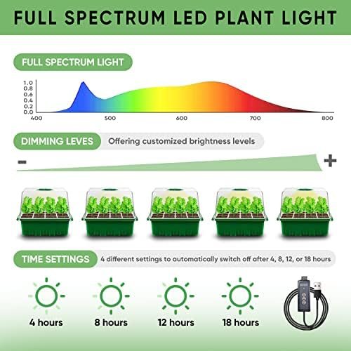 【Full Spectrum LED Plant Light with Brightness & Timer Setting】The upgraded plant light with 8 LEDs provides strong and uniform light, similar to sunlight. Offering customized brightness levels to cater to the specific lighting needs of plants at different growth stages, seedling tray also features a convenient timer. This plant light can replace natural light and promote plant growth, making it ideal for indoor growing, greenhouse cultivation, or plant labs.