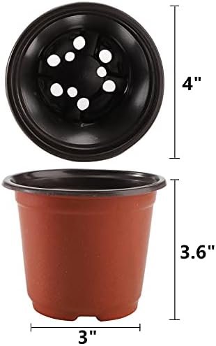 You will receive 200 pieces of red brick color plastic plant pots. Each one measures approx. 4″ outside diameter at top x 3″ bottom diameter x 3.6″ height, with 9 drainage holes at the bottom to keep soil drained and ventilated