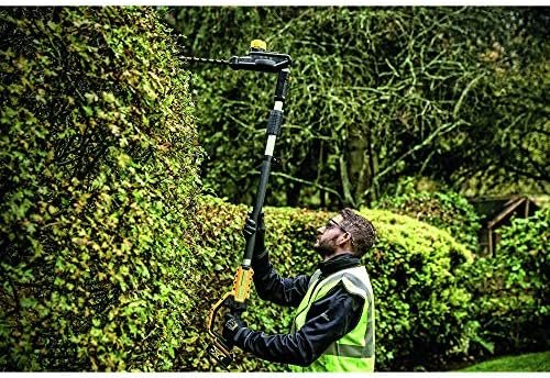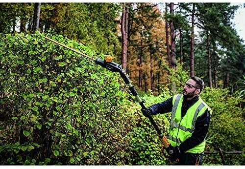 This Pole Hedge Trimmer is designed to cut through a variety of landscape overgrowth. The pole hedge trimmer has a high output motor and 22 in. hardened steel laser-cut blades engineered for clean, fast cuts on branches up to 1 in. thick. The 7-position, 180⁰, articulating head allows you to customize cutting angles for hedges of any shape and size. When fully extended, the pole hedge trimmer can be extended up to a 12 ft. max reach**.