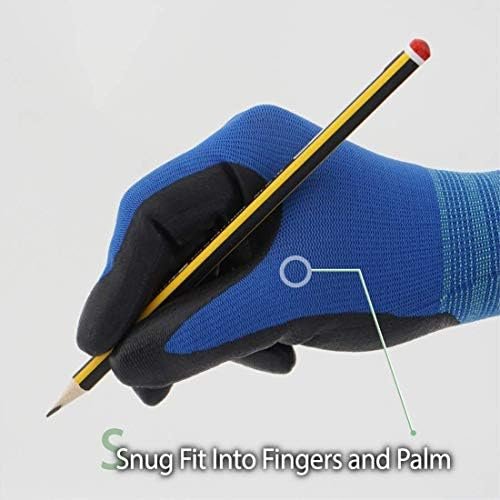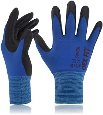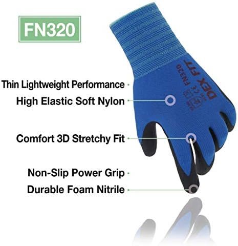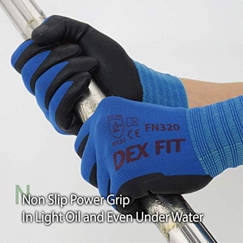 DEX FIT Premium Nylon Work Gloves FN320 – Firm Nitrile Grip, 3D-Comfort Stretchy Fit, Thin & Lightweight, Protective & Durable, Breathable, Machine Washable; Blue 9 (L) 3 Pairs