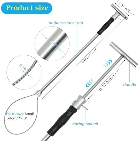 The retractable noose,Thickness wire rope,forms a loop from 1-inch to 9.4-inch in diameter,maximum perimeter: 22.8 inch,not easy to be broken.