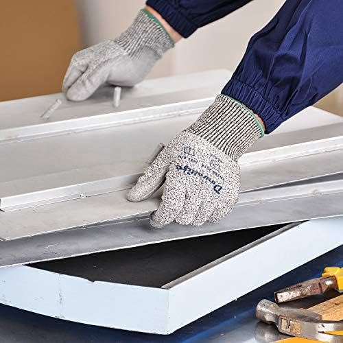 [DEXTERITY AND COMFORT] The ultra-thin coated PU layer, 13-gauge HDPE cut resistant fabric, spandex & high elastic nylon blended make the working gloves fit your hands appropriately. They are excellently qualified for jobs requiring dexterity and will give you more confidence in your work, such as construction, gardening, warehouse, mechanic, yard work, weeding, garbage collecting…