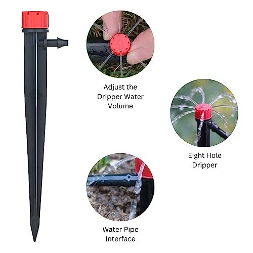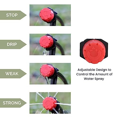 These drippers have an adjustable design that allows you to control the water flow and sprinkling distance by rotating the cap.