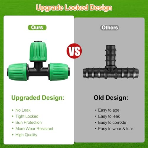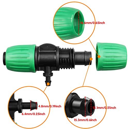 【MADE OF DURABLE PLASTIC MATERIAL】These drip irrigation parts are made of high quality engineering plastics, so our irrigation tee connectors are durable, strong, water resistant, chemical-resistant and long-lasting than others.