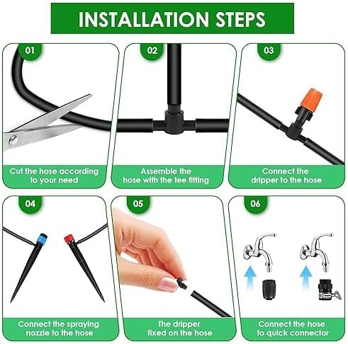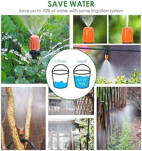 SAVE WATER:Compared to traditional methods, our drip line irrigation system saves up to 75% water consumption. Simply follow the instructions to cut the hose according to requirement and install the nozzles. Each nozzle’s water output can be adjusted individually for water saving.