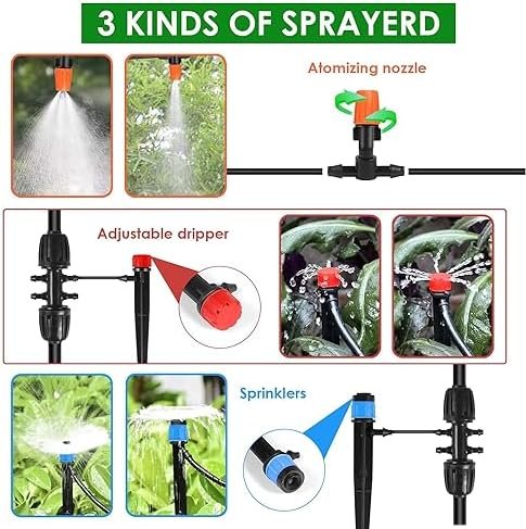 ADJUSTABLE DRIP IRRIGATION EMITTER:Comes with 3 types of sprayer, every water spray nozzle could be adjusted individually according to its setting and water needs of different plants. Meet All Your Needs.