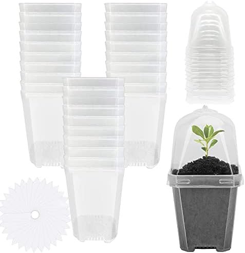 EBaokuup Plastic Plant Nursery Pots with Humidity Dome, Seed Starting Pot with Drain Holes for Seedlings/Vegetables/Succulents/Cuttings