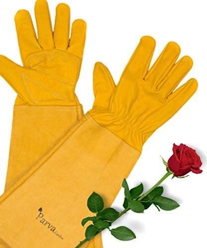 Finally a pair of gloves that will actually protect your hands and arms! Prune roses with ease and without fear of being punctured. Great for people with sensitive skin and those looking for serious protection. Parva Garden offers you a superior pair of rose gardening gloves. Our customers love the rich yellow color that wears nicely with age. Our high quality gloves go beyond just pruning roses, many have found our gloves to protect against roseberry bushes, holly, hawthurn trees, silverthurn, succulent and thorny vines too! 100% Satisfaction Guarantee. We at Parva Garden believe you should love your gloves and if you are not satisfied with your purchase we will gladly offer you a full refund.
