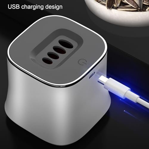【Convenient to Use】This sunflower peeling machine can be recharged by a USB interface, which charges quickly and stably. This sunflower nut splitter can automatically reverse when the melon nuts are stuck, pushing them out for easy removal. This feature effectively reduces jamming, protects the motor from being burned out, and helps you peel melon nuts easily and smoothly.
