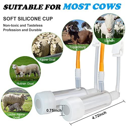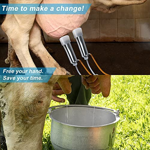 【More Comfortable Milking Experience For Your Cow or Goat】 The vacuum pulsation system will cause the nipple lining on and under the nipple to collapse, about once every second, to massage the nipple and maintain normal blood flow. It will prevent damage or injury to the nipples due to continuous vacuum. This pulsating milking machine for goat/cow simulates the strength and frequency of human hands well,give your Sheep/Cow a more comfortable milking experience.