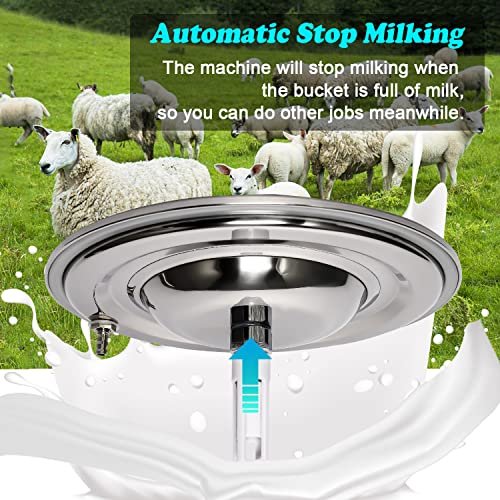 【Automatically Stop When the Milk is Full】 The milk bucket is equipped with a check valve. So the milking machine will automatically stop working when the milk is full, preventing milk from flowing into the pump, extending equipment service time.Folding handle are on 2 sides. Super convenient to carry and pour out milk.