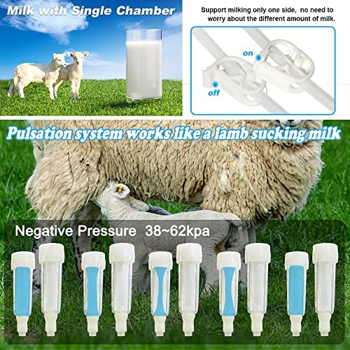 【Time & Labor-Saving】 The pulsating cycle is 40~46 times per minute, using a goat milker machine saves at least one-half of the labor and time. No need to tolerate cold in winter or sweated in summer when milking.