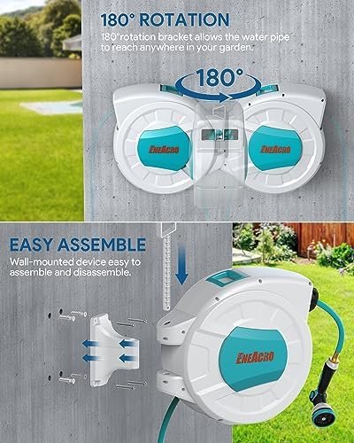 ✅【LOCKED AT ANY LENGTH & AUTO REWIND SYSTEM】 – The hose can be locked at any length by pulling it to a certain length, it automatically locks in that position, so you don’t have to pull it all the time. And the ENEACRO’s auto rewind design allows for 3,600 cycles of retraction, which is 20% more than other competitors on the market.