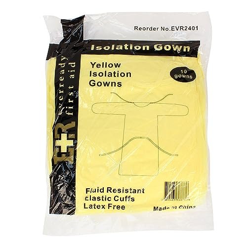 Ever Ready First Aid Isolation Gown with Elastic Wrists, Fluid Resistant, Yellow (Pack of 10)