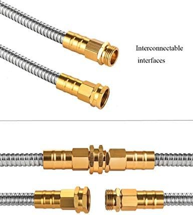 Excellent material:304 stainless steel shell-16 size -3/8 “inner diameter 5/9 ” maintains good water pressure and durable hose. Outer diameter corrosion and rust prevention! Inner hose without lead / BPA / phthalate!