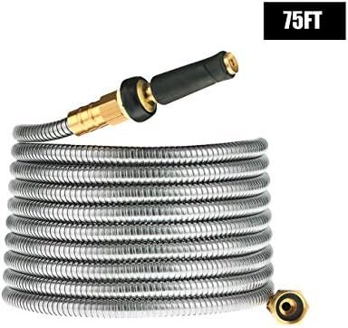 Expandable Metal Garden Hose 75 FT – 304 Stainless Steel Water Hose 75 FT – Heavy Duty non Kinking Flexible Garden Hose, no Bite