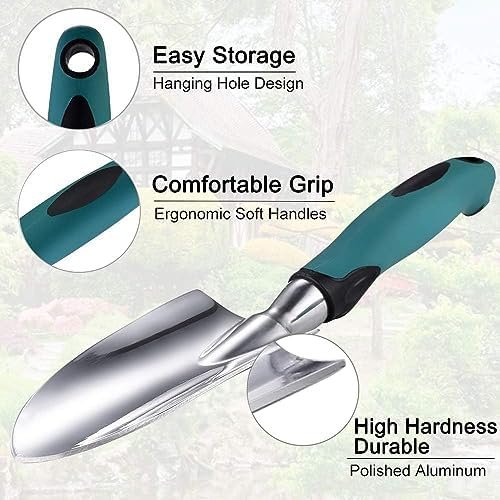 DURABLE & STURDY — Improved with top quality no rusting aluminum, which are shiny, rust-proof, long lasting, do not snap easily and extremely sturdy. This heavy duty garden kit is crafted for durability, can withstand the toughest roots, rocks, and soil.