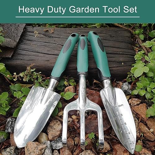 FANHAO Garden Tools Set, 3 Piece Heavy Duty Gardening Tools Cast Aluminum with Soft Rubberized Non-Slip Handle, Durable Garden Hand Tools Garden Gifts for Men Women