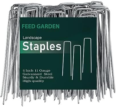 【PACKAGE INCLUDED and SIZE】The 11 gauge 50 Pack landscape fabric staples are 6 inches long, the top width is 1 inch, the width below is 1.5 inch. This heavy duty and adjustable garden stakes can hold a variety of garden and landscape objects.