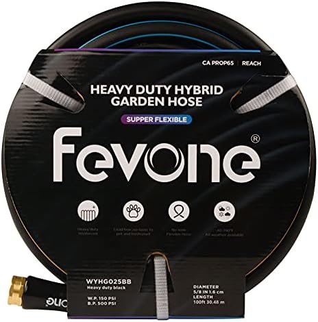 Be the first to review “Fevone Garden Hose 100 ft x 5/8″, Heavy Duty Water Hose, Flexible and Lightweight, Hybrid Hose Kink Free, Easy to Coil, Solid Aluminum Fittings – No Leak”