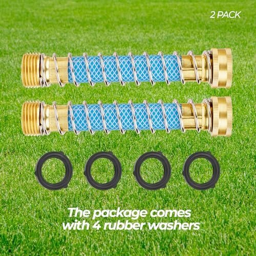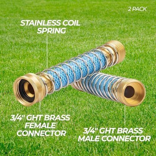 443443443443 Fevone Garden Hose Extension 5.7 “, Hose Extender, Hose Connection, Flexible Hose Protector, Short Hose Connectors, Small Water Hose Extension with Coil Spring, Solid Brass Fittings – No Leak, 2 Pack – 4zera3a