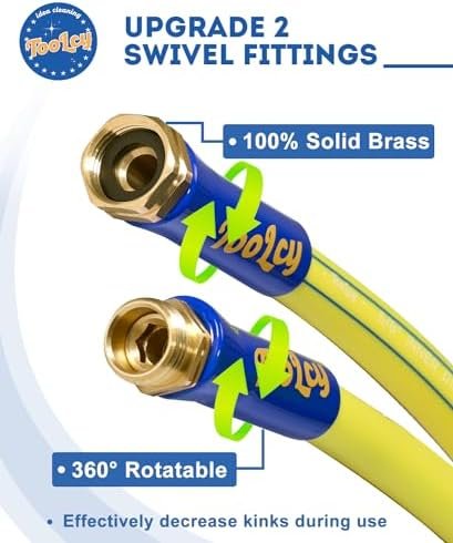 【Swivel Grip Handle】- TOOLCY outdoor garden hoses with 2 swivel grip handles, the hose and grip can rotate independently, which prevents the hose tangling or kinking when connection with faucet and sprayer, save your time and effort.