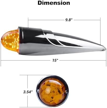 Dimension:15″ in length by 3.54″ in height, with a hole distance of 9.8″, watermelon style Torpedo roof light. Before purchasing, please check the size of the cab marker light to ensure compatibility with your stock cab marker light.