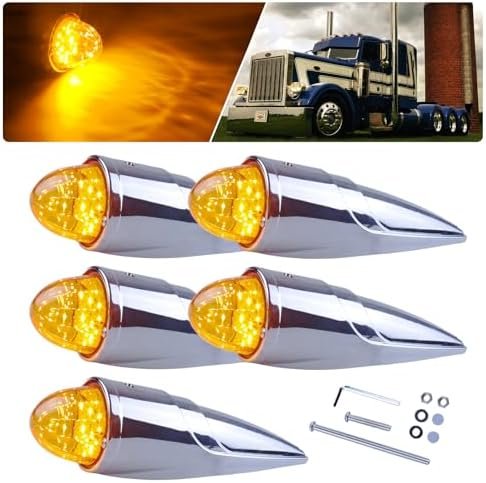 for Grakon 1000 Large Size Cab Marker Roof Running Top Lights Assembly 18 LED Torpedo Watermelon Amber Lights for International Kenworth/Peterbilt/Freightliner/Mack, 5Pcs