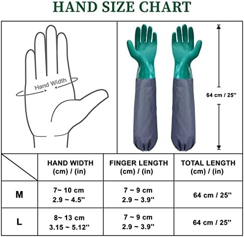 100% Liquid Proof.Better Dexterity, Comfortable Seams.Elastic in Upper Sleeve Keeps Glove On.lexible, Sandy Textured Finish for Superior Grip.25 Inch Gauntlet Cuff Protects Wrists and Forearms.