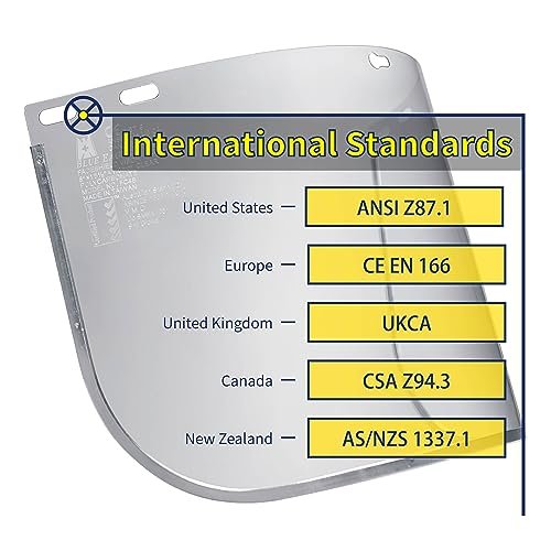 INTERNATIONAL STANDARDS — Meets ANSI Z87.1 (US), CE EN166 (Europe), CSA Z94.3 (Canada), AS/NZS 1337.1 (Australia and New Zealand), UKCA (United Kindom)