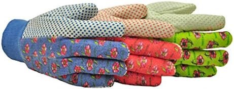 G & F 1852-3 Women Soft Jersey Garden Gloves, Women Work Gloves, 3-Pairs Green/Pink/Blue per Pack